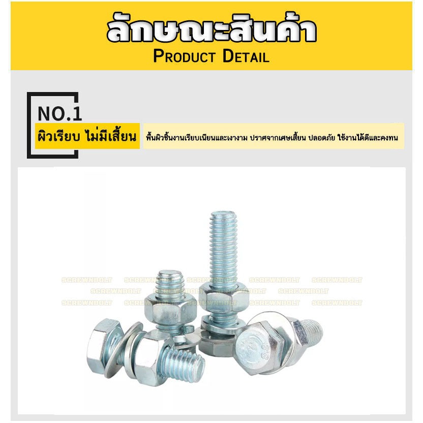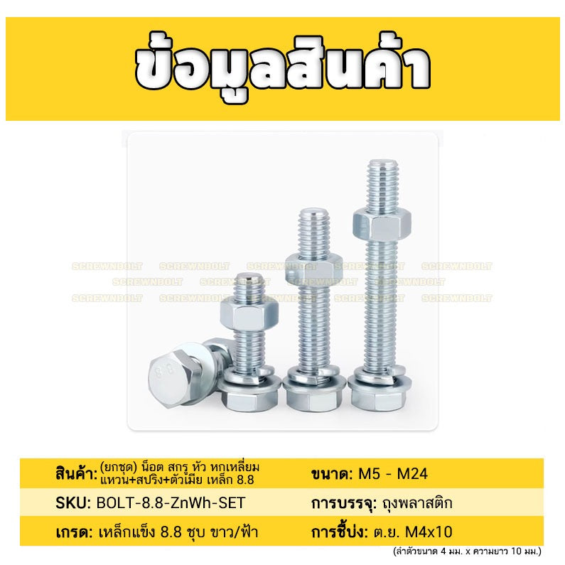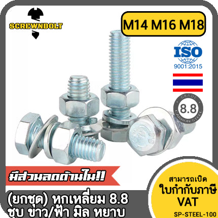 🔍 ชื่อรายการสินค้า : (ยกชุด) น็อต สกรู หัว หกเหลี่ยม แหวน+สปริง+ตัวเมีย เหล็ก 8.8 ชุบ ขาว/ฟ้า มิล หยาบ M14 M16 M18