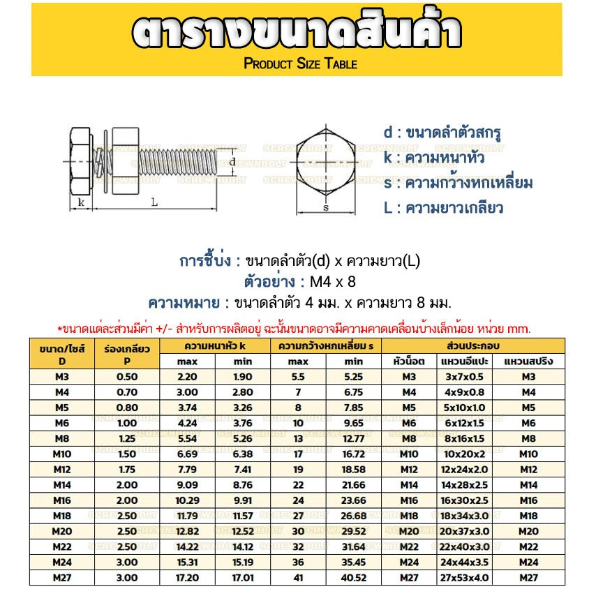 🟨 สกรูหัวเหลี่ยม สกรูหัวหกเหลี่ยม / Hexagon Machine Screw/Bolt 🟨