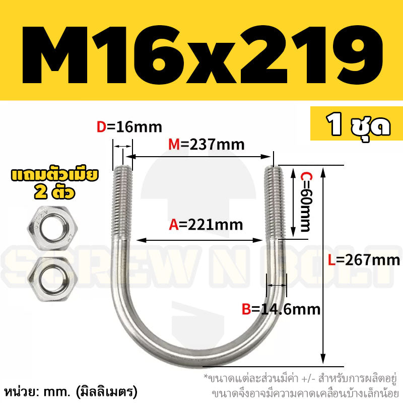 🔍 ชื่อรายการสินค้า : ยูโบลท์ สลักเกลียวตัวยู ยึดจับท่อ สแตนเลส 304 พร้อมตัวเมีย 2 ตัว M16