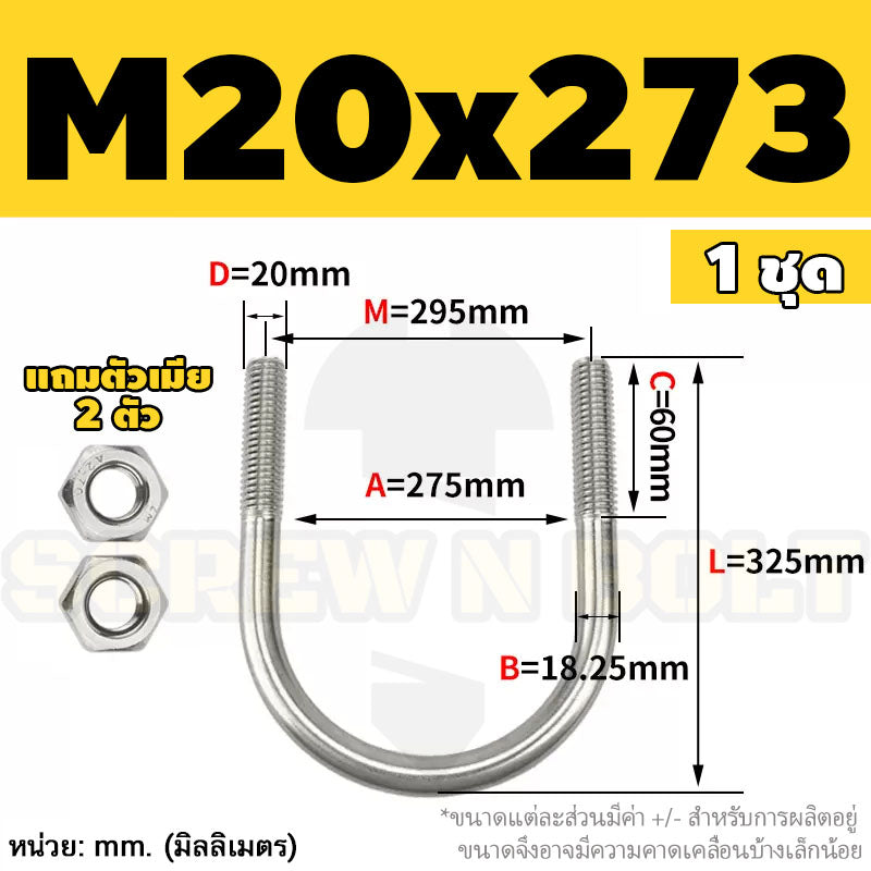 🔍 ชื่อรายการสินค้า : ยูโบลท์ สลักเกลียวตัวยู ยึดจับท่อ สแตนเลส 304 พร้อมตัวเมีย 2 ตัว M20 M24