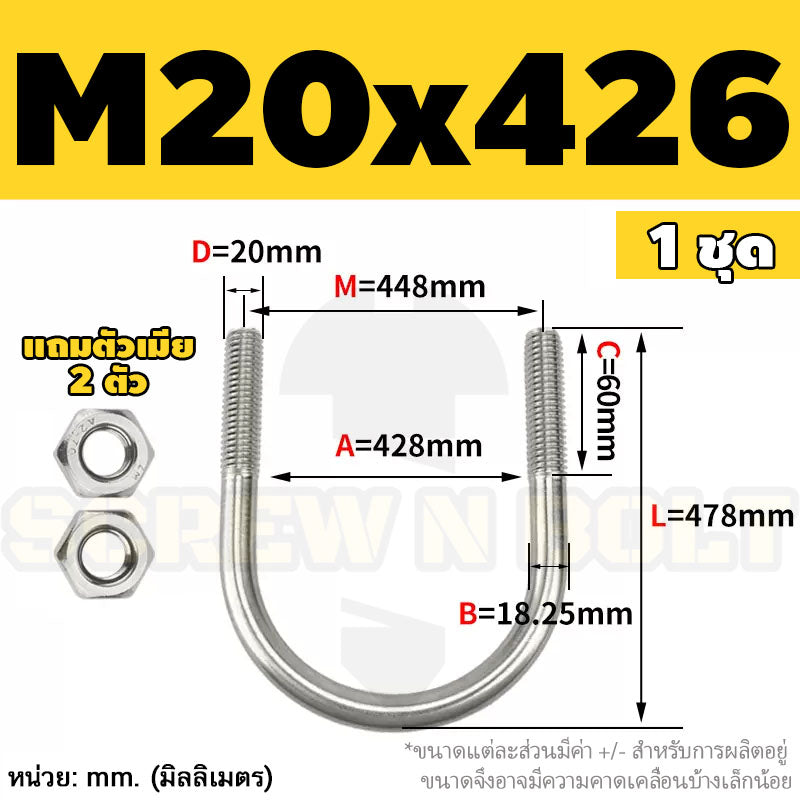 🔍 ชื่อรายการสินค้า : ยูโบลท์ สลักเกลียวตัวยู ยึดจับท่อ สแตนเลส 304 พร้อมตัวเมีย 2 ตัว M20 M24