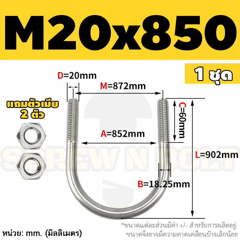 🔍 ชื่อรายการสินค้า : ยูโบลท์ สลักเกลียวตัวยู ยึดจับท่อ สแตนเลส 304 พร้อมตัวเมีย 2 ตัว M20 M24