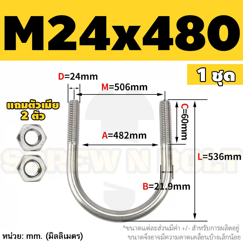 🔍 ชื่อรายการสินค้า : ยูโบลท์ สลักเกลียวตัวยู ยึดจับท่อ สแตนเลส 304 พร้อมตัวเมีย 2 ตัว M20 M24