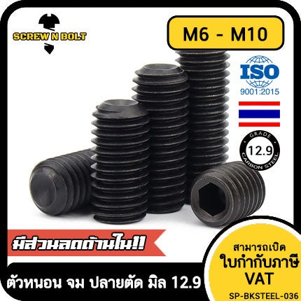 #สกรู ตัวหนอน #เหล็กแข็ง 12.9 #ขัน หกเหลี่ยม ปลายตัด #M6 M8 M10