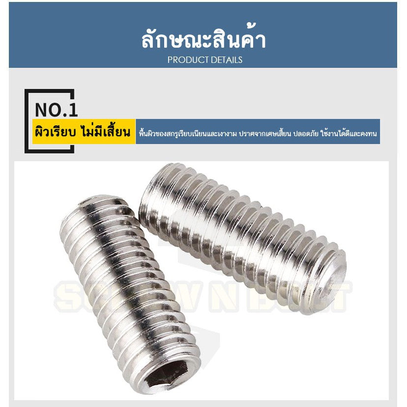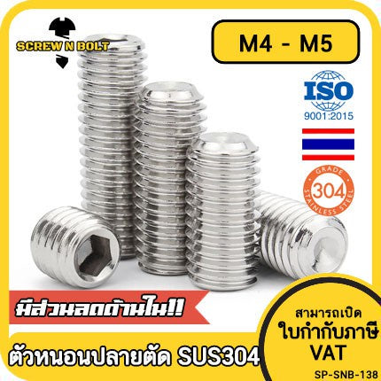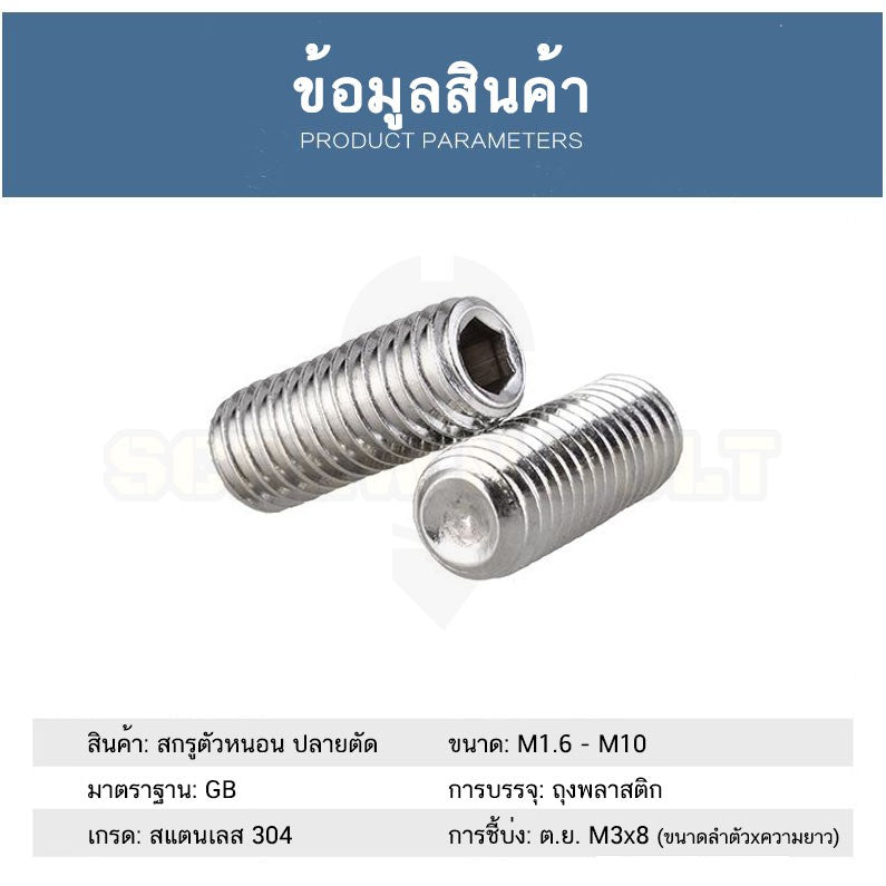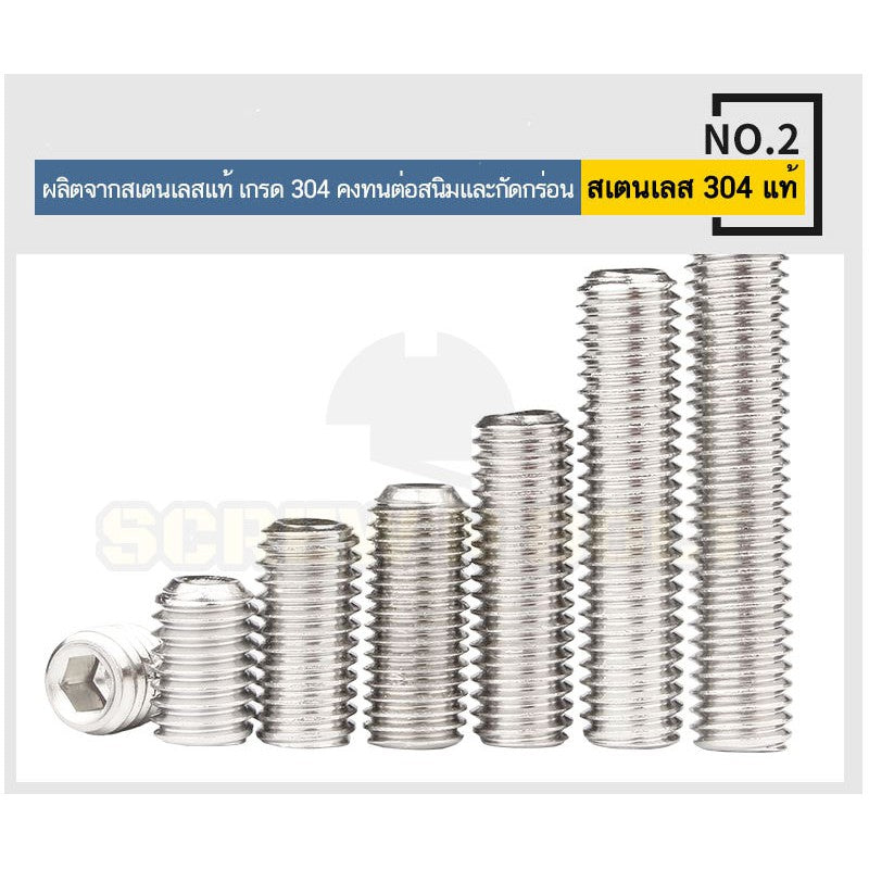 🔍 ชื่อรายการสินค้า : สกรูตัวหนอน ปลายตัด สแตนเลส 304 - ไซส์ M4 M5