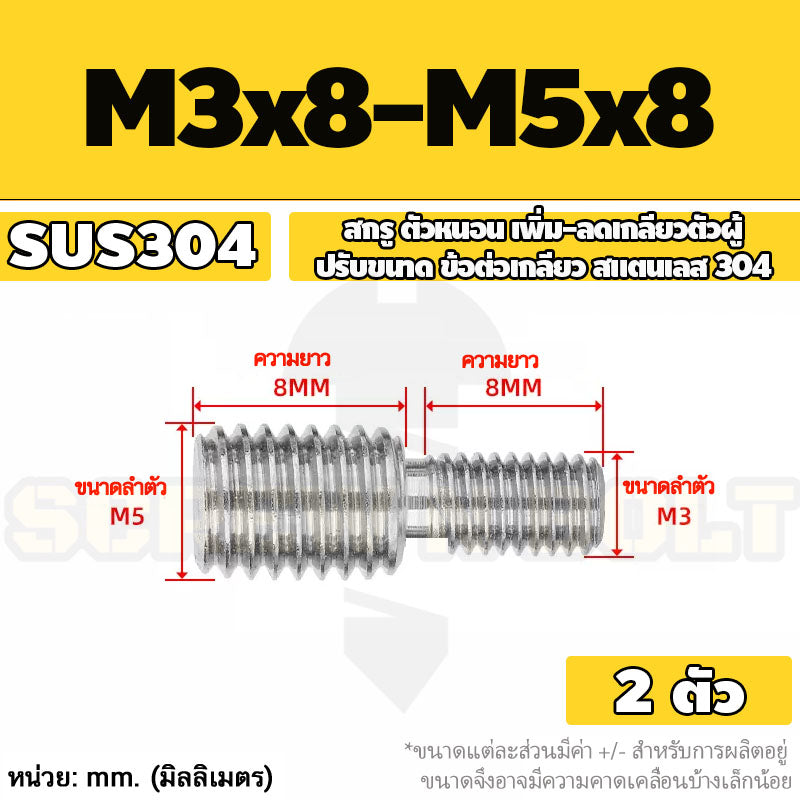 สกรู ตัวหนอน เพิ่ม-ลดเกลียวตัวผู้ ปรับขนาด ข้อต่อเกลียว สแตนเลส 304 เกลียวมิล หยาบ M3 - M20 / Coversion Set Screw SUS