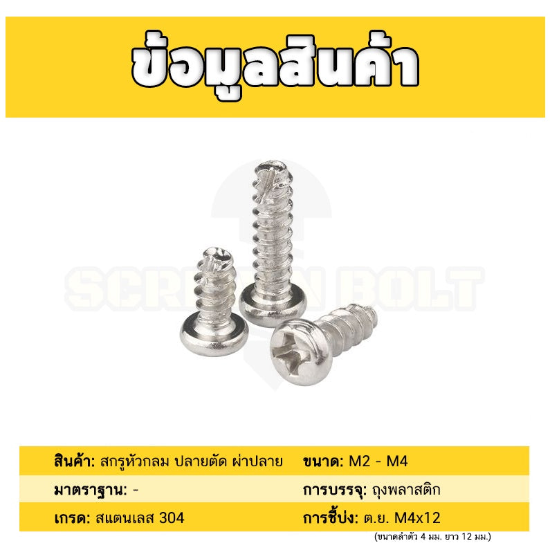 🔍 ชื่อรายการสินค้า : สกรู น็อต หัวกลม แฉก + ขันพลาสติก สแตนเลส 304 เกลียวปล่อย ปลายตัด ผ่าปลาย M2 M2.3 M2.6 M3 M4