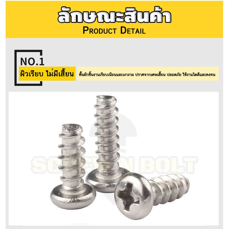 🔍 ชื่อรายการสินค้า : สกรู น็อต หัวกลม แฉก + ขันพลาสติก สแตนเลส 304 เกลียวปล่อย ปลายตัด M3 M3.5 M4 M5