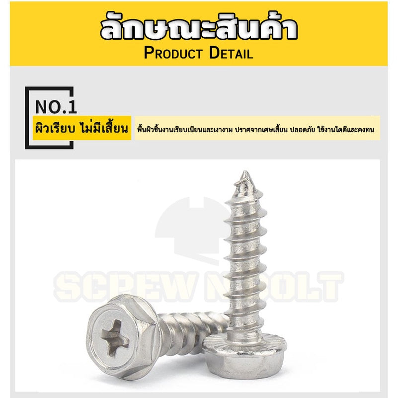 สกรู น็อต หัวหกเหลี่ยมติดแหวน ติดจาน แฉก มีลาย สแตนเลส 304 เกลียวปล่อย M3M4M5M6 / Hex Washer Phil Serration Tapping