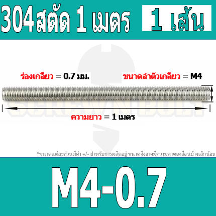 🔍 ชื่อรายการสินค้า : สตัด โบลท์ ตลอด ยาว 1 เมตร สแตนเลส 304 เกลียวมิล หยาบ M4 M5 M6