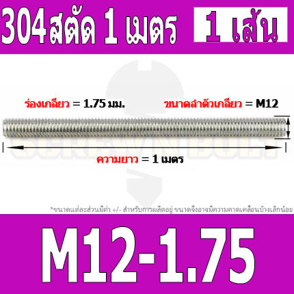 🔍 ชื่อรายการสินค้า : สตัด โบลท์ ตลอด ยาว 1 เมตร สแตนเลส 304 เกลียวมิล หยาบ M8 M10 M12