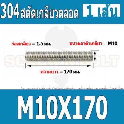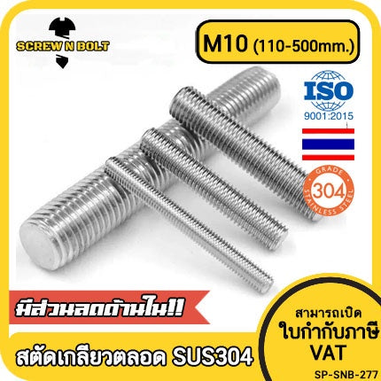 #สตัด โบลท์ #สแตนเลส 304 #เกลียวตลอด ยาว 110-500 มม. #M10