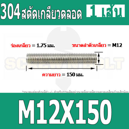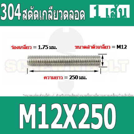 #สตัด โบลท์ #สแตนเลส 304 #เกลียวตลอด ยาว 110-500 มม. #M12