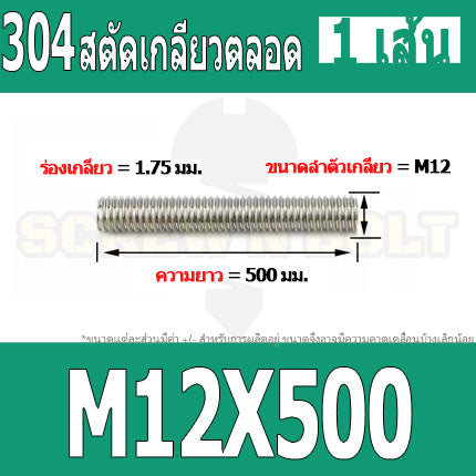 #สตัด โบลท์ #สแตนเลส 304 #เกลียวตลอด ยาว 110-500 มม. #M12