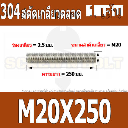 สตัด โบลท์ เกลียวตลอด ยาว 110-500 มม. สแตนเลส 304 เกลียวมิล หยาบ M20 / Stud Bolt Thread Bolt 110-500 mm.