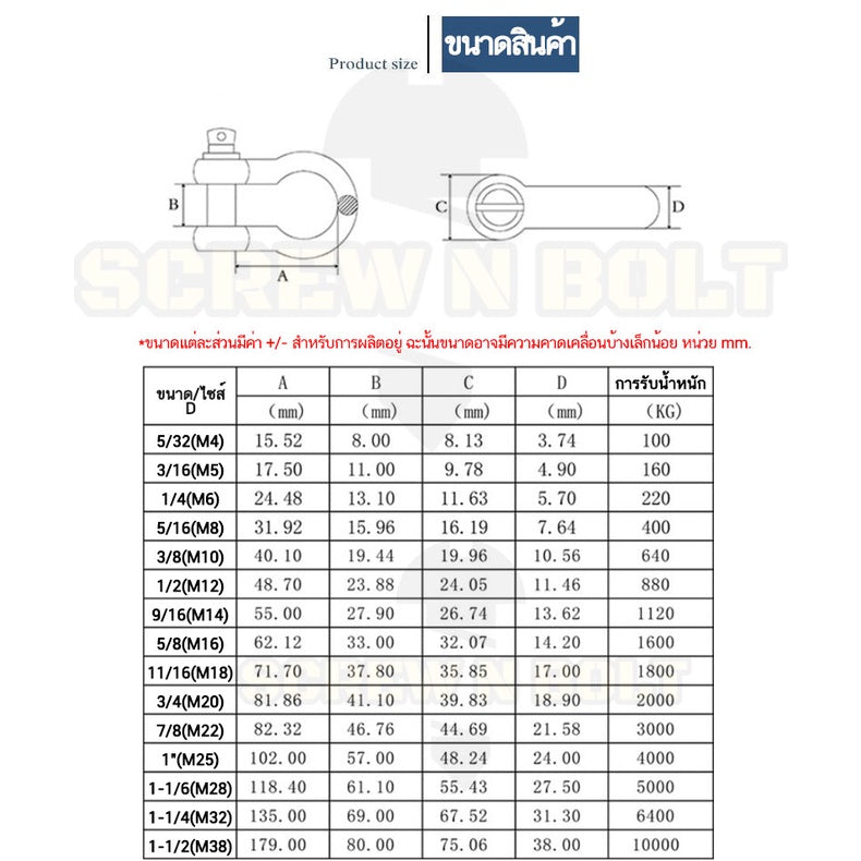 สเก็น สะเก็น ตัวโอ O ตัวดี C พร้อมพินสกรู สแตนเลส 304 - 5/32 3/16 1/4 5/16 3/8 1/2 / Anchor Shackle, SUS304