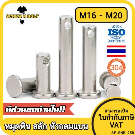 🔍 ชื่อรายการสินค้า : หมุดพิน ปิ๊น สลัก หัวกลมแบน สแตนเลส 304 แถมปิ้นเสียบ M16 M18 M20