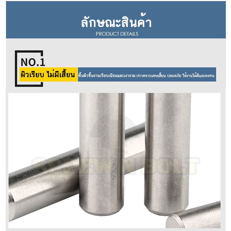 🔍 ชื่อรายการสินค้า : หมุดพิน ปิ๊น สลัก แกนเดือย สแตนเลส 304 กลม dia. 4 5 mm.