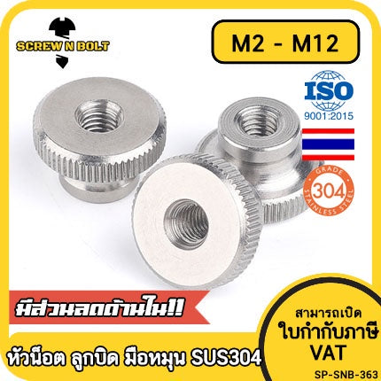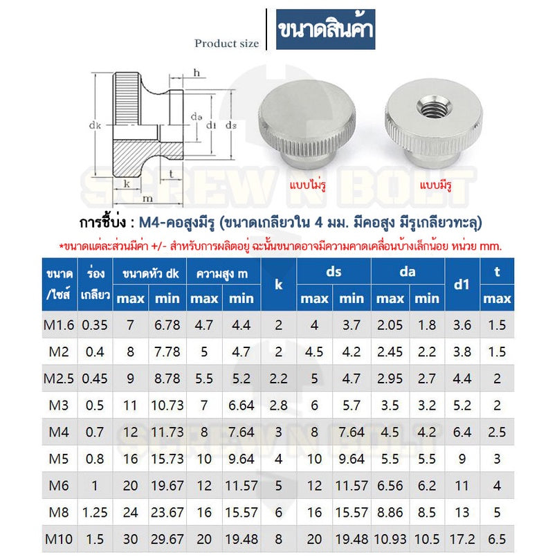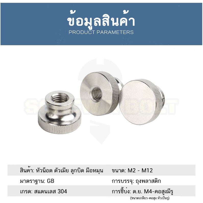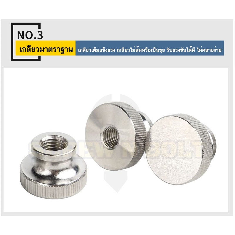 🔍 ชื่อรายการสินค้า : หัวน็อต ตัวเมีย ลูกบิด มือหมุน มีคอ สแตนเลส 304 เกลียวมิล หยาบ M2M2.5M3M4M5M6M8M10M12