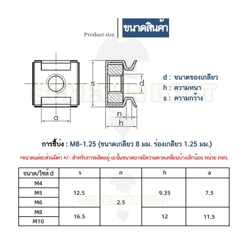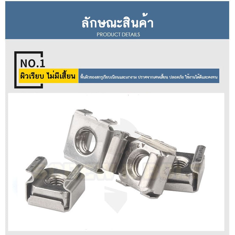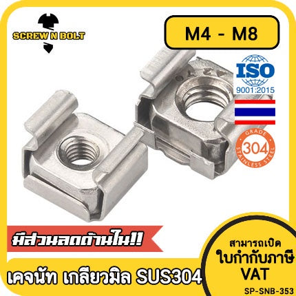 หัวน็อต ตัวเมีย เคจนัท สำหรับแผ่นบอร์ด สแตนเลส 304 เกลียวมิล หยาบ M4 M5 M6 M8 / Cage Nut, SUS304