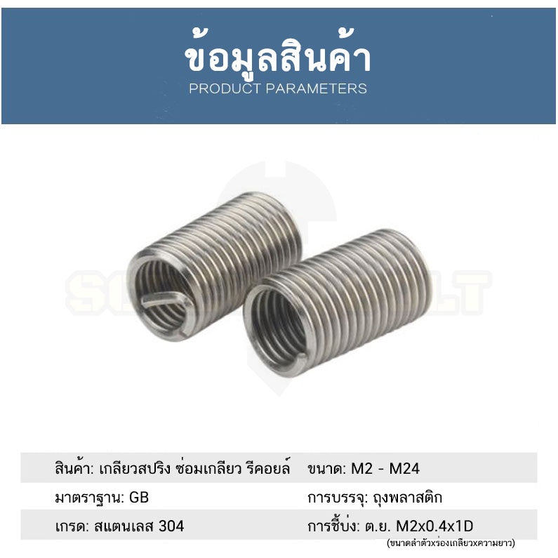 🔍 ชื่อรายการสินค้า : เกลียวสปริง ซ่อมเกลียว รีคอยล์ สแตนเลส 304 เกลียวมิล หยาบ M2 M3 M4 M5