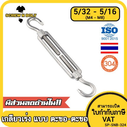 "🔍 ชื่อรายการสินค้า : เกลียวเร่ง ยึด-ปรับระดับ สลิง โซ่ แบบ ตะขอ-ตะขอ สแตนเลส 304 - 5/32 3/16 1/4 5/16