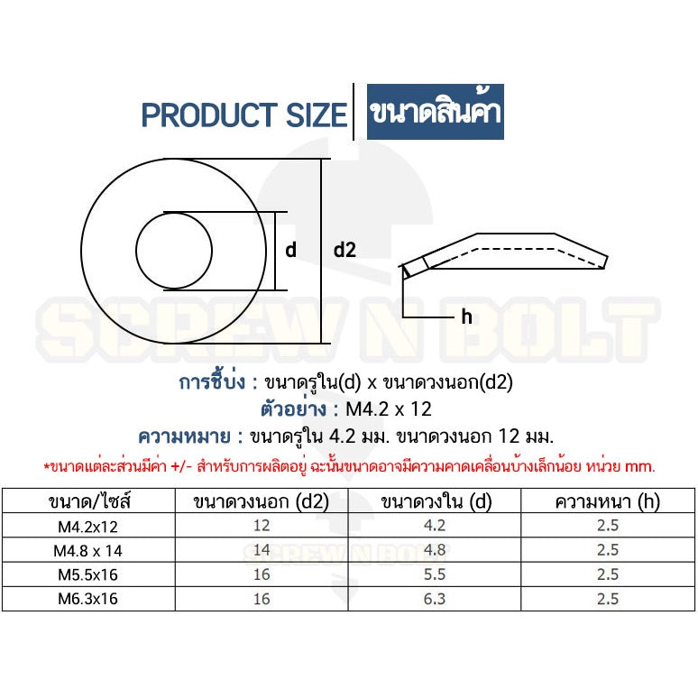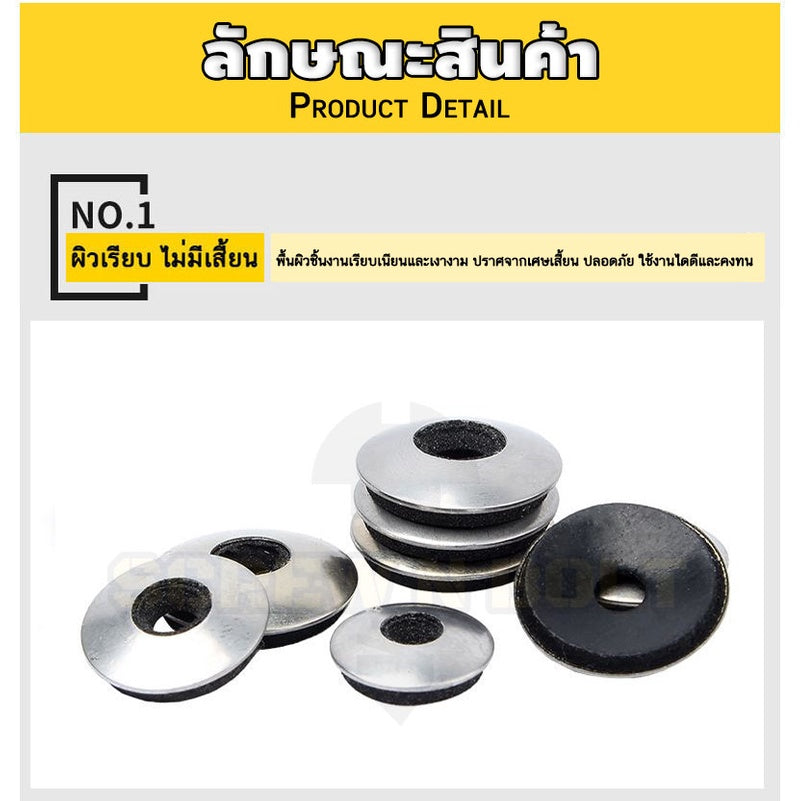 🔍 ชื่อรายการสินค้า : แหวนรอง กันน้ำซึม กันรั่ว แหวนรองน็อตหลังคา กันสนิม สแตนเลส 304 - รู 4 - 10 มม.