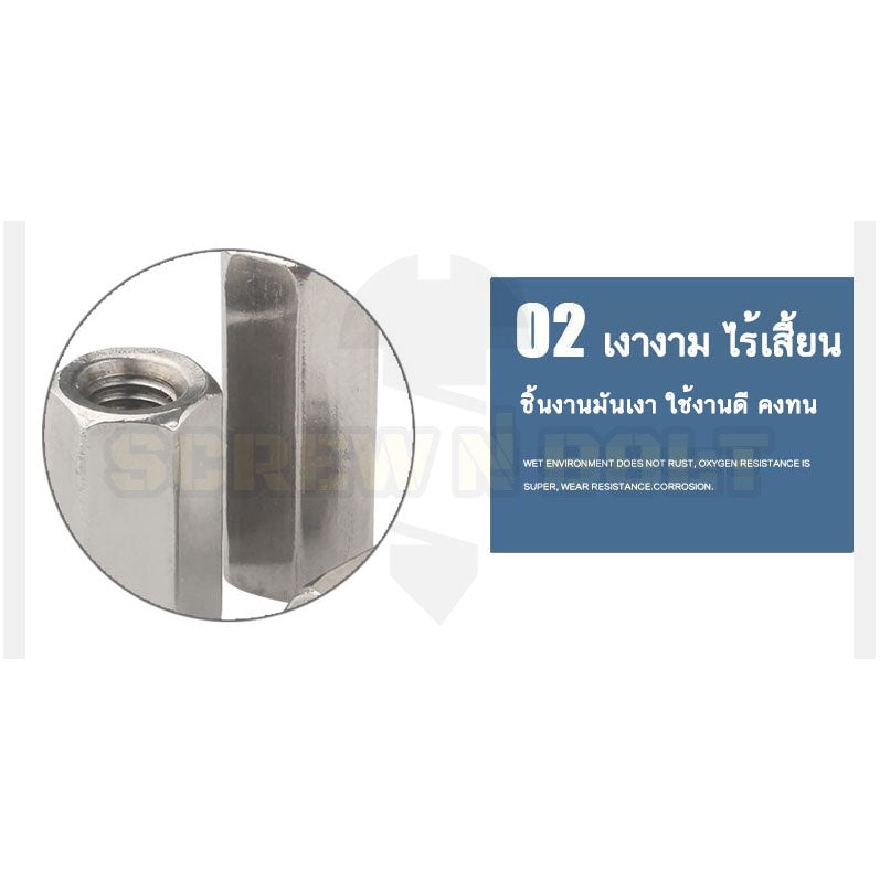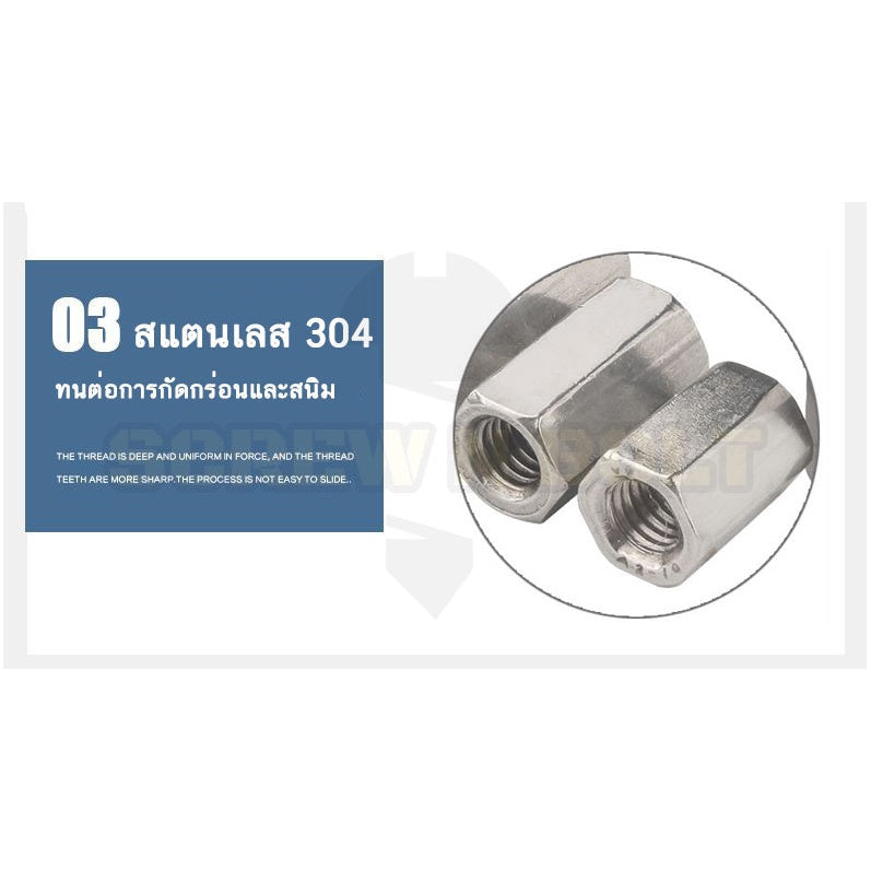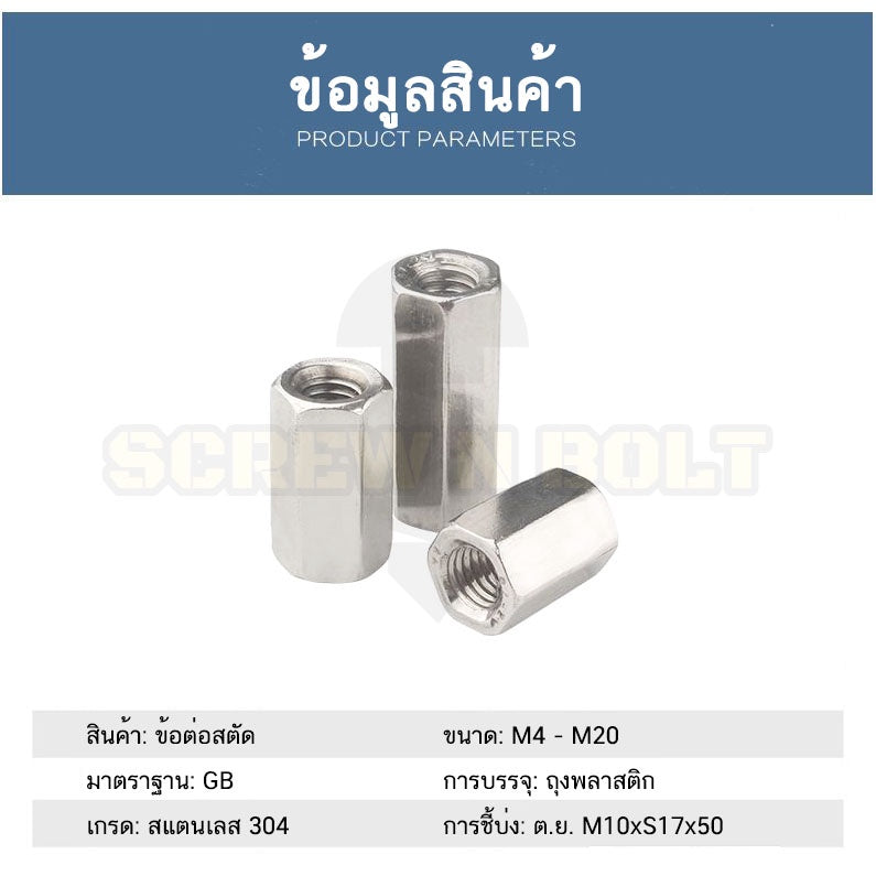 #ข้อต่อสตัด #สแตนเลส 304 #หัวน็อตยาว #ไซส์ M20
