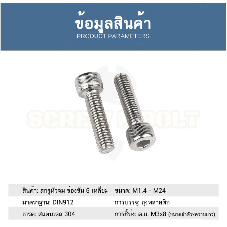 🔍 ชื่อรายการสินค้า : น็อต สกรู หัวจม สแตนเลส 304 เกลียวหุน หยาบ #0 #1 #2 #3