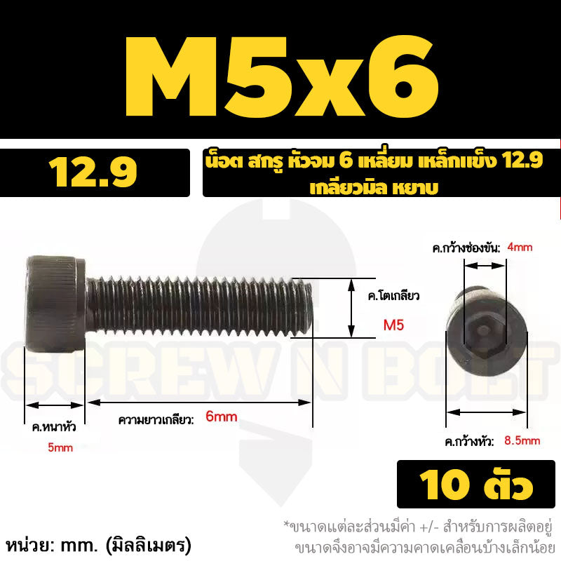 #น็อต สกรู #เหล็กแข็ง 12.9 #หัวจม 6 เหลี่ยม #M5 M6