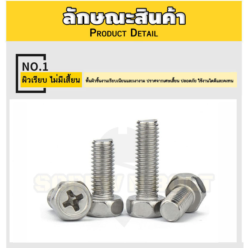 🔍 ชื่อรายการสินค้า : น็อต สกรู หัวหกเหลี่ยม ฝังแฉก สแตนเลส 304 เกลียวมิล หยาบ M3 M4 M5
