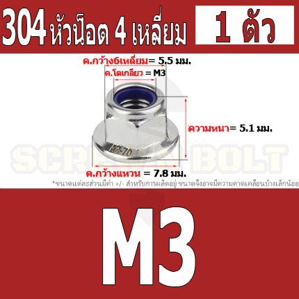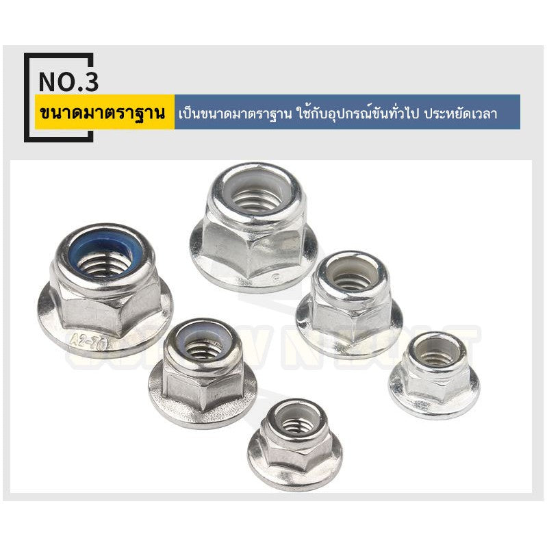 #หัวน็อตล็อค #สแตนเลส 304 #ไนลอน #ไซส์ M3 M4 M5 M6