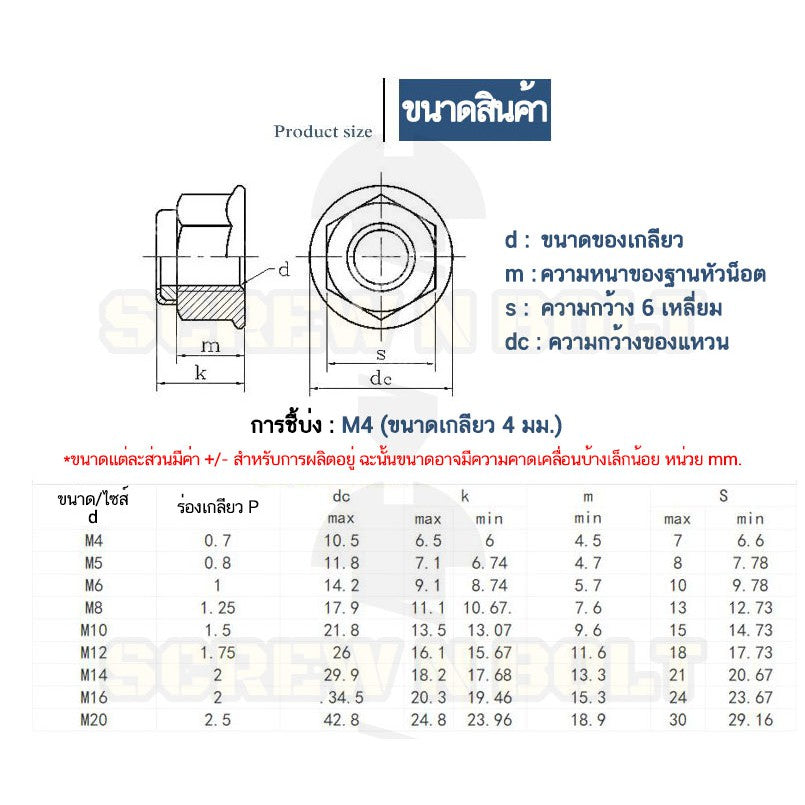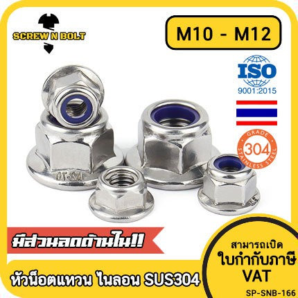 #หัวน็อตล็อค #สแตนเลส 304 #ไนลอน #ไซส์ M8 M10 M12