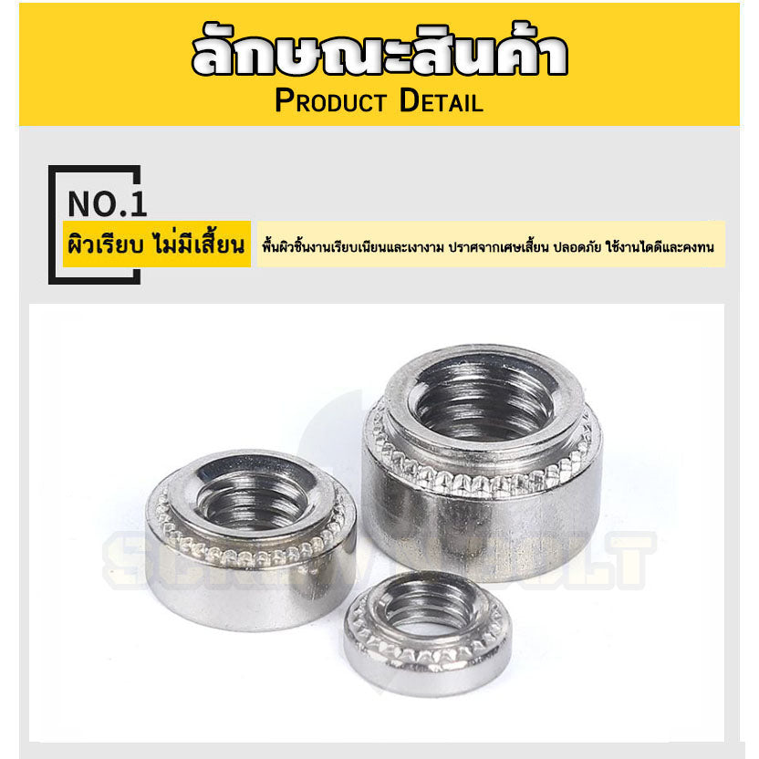 🔍 ชื่อรายการสินค้า : หัวน็อต ตัวเมีย แบบปั้ม-กดอัด บนแผ่นสแตนเลส สแตนเลส 304 เกลียวมิล หยาบ M2M3M4M5M6M10M12