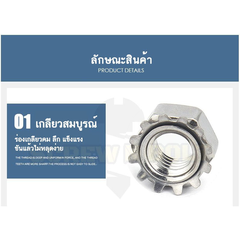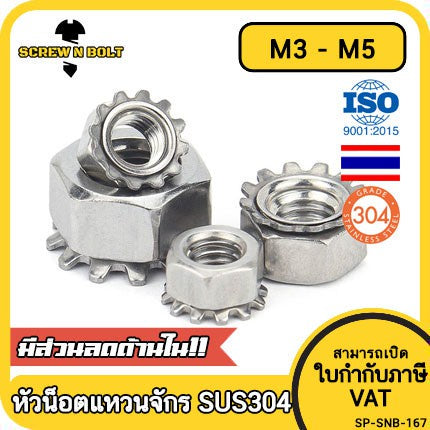 🔍 ชื่อรายการสินค้า : หัวน็อตล็อค แหวนจักร สแตนเลส 304 กันคลาย ไซส์ M3 M4 M5