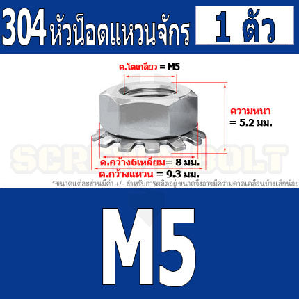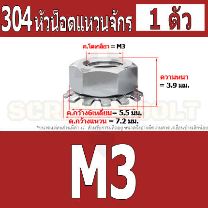 #หัวน็อตล็อค #สแตนเลส 304 #แหวนจักร #ไซส์ M3 M4 M5