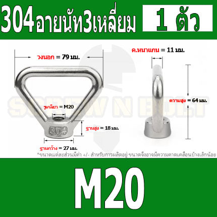 #อายนัท #สแตนเลส 304 #ทรงสามเหลี่ยม #M16 M20 M24