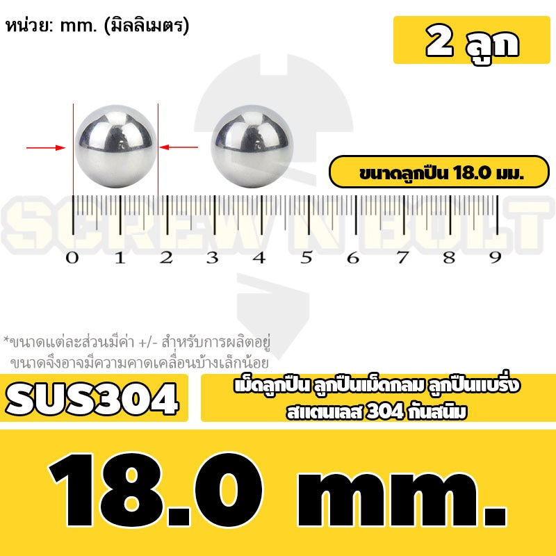 เม็ดลูกปืน ลูกปืนเม็ดกลม ลูกปืนแบริ่ง สแตนเลส 304 กันสนิม ไซส์: 11 - 28 mm. / Stainless Steel Ball Bearing SUS304
