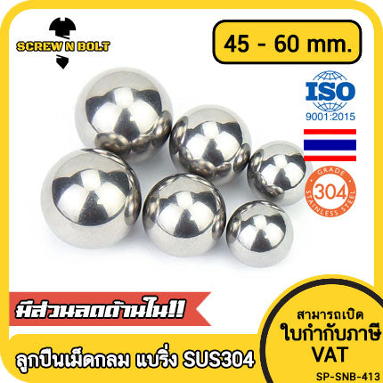 #เม็ดลูกปืน #สแตนเลส 304 #ลูกปืนเม็ดกลม ลูกปืนแบริ่ง #ไซส์: 45 - 60 mm.