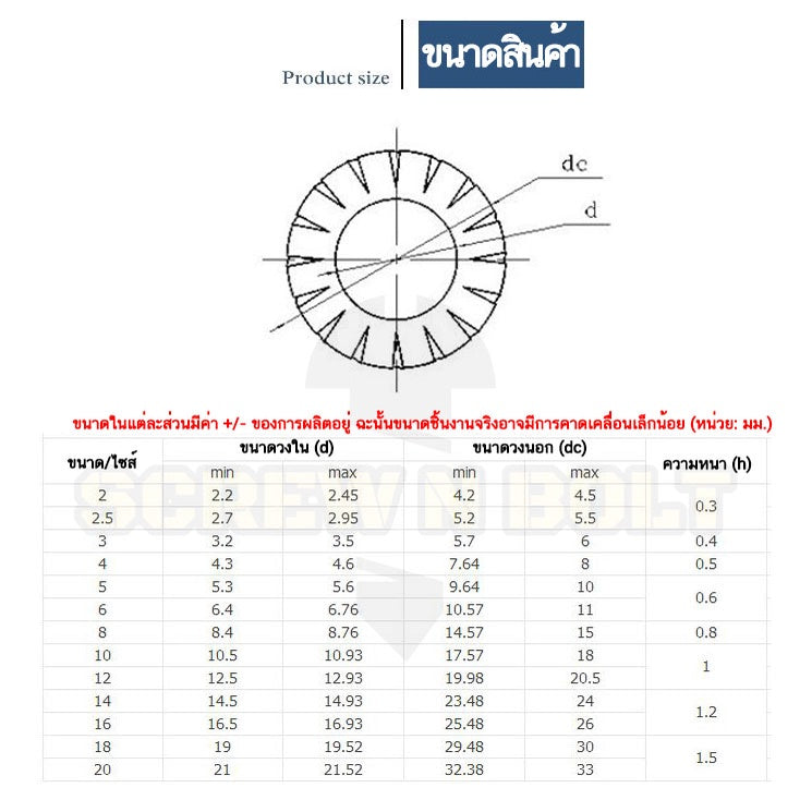 แหวนจักร นอก ถี่นอก กันคลาย สแตนเลส 304 ถี่นอก M27 M30 / External Toothed Lock Washer SUS304 M27 M30