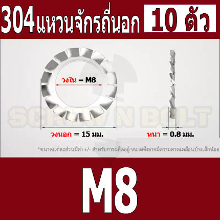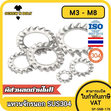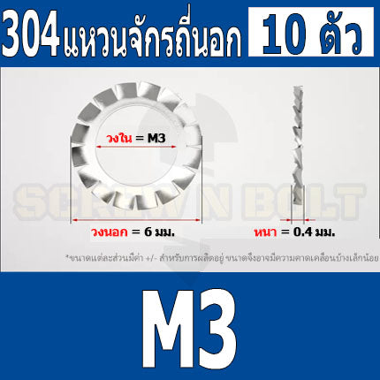 แหวนจักร นอก ถี่นอก กันคลาย สแตนเลส 304 ถี่นอก M3 M4 M5 M6 M8 / External Toothed Lock Washer SUS304 M3 M4 M5 M6 M8