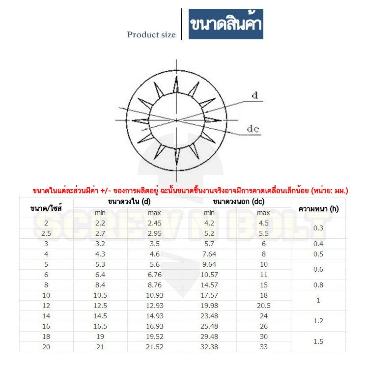 แหวนจักร ใน ถี่ใน กันคลาย สแตนเลส 304 M27 M30 / Internal Toothed Lock Washer SUS304 M27 M30