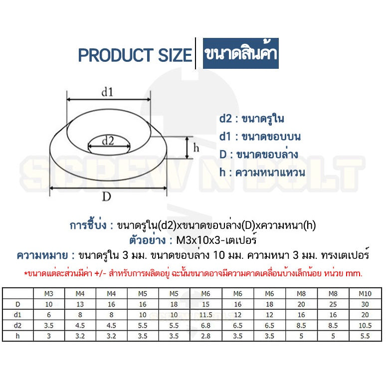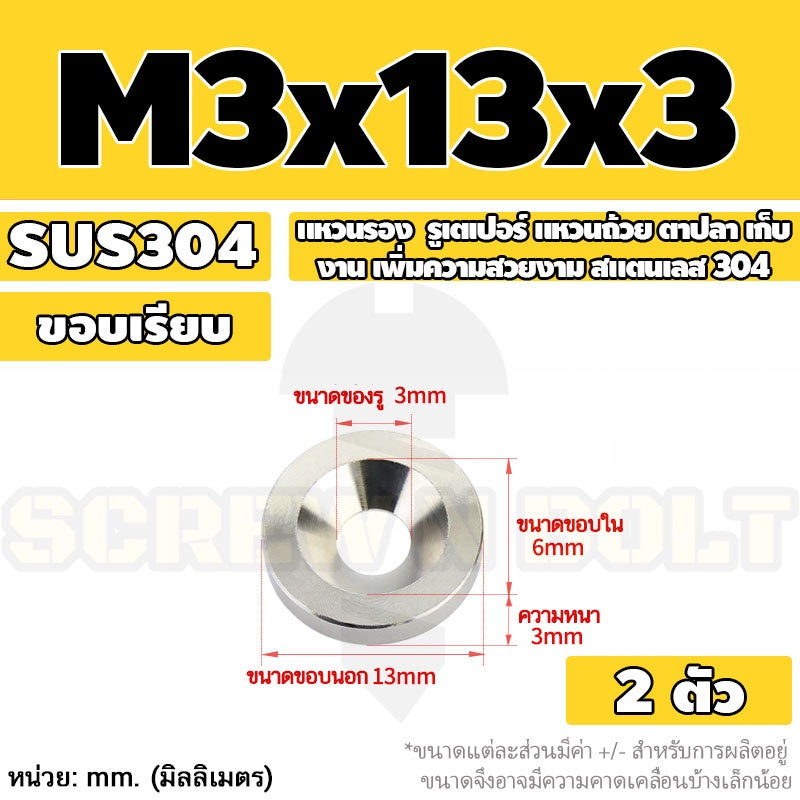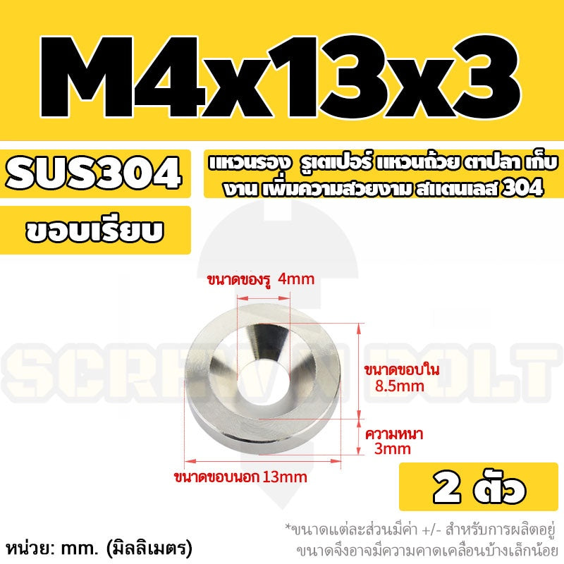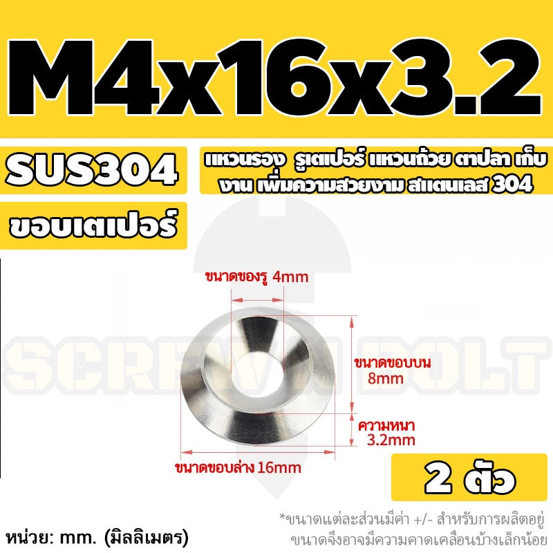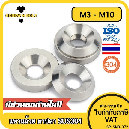 #แหวนรอง #สแตนเลส 304 # รูเตเปอร์ แหวนถ้วย ตาปลา เก็บงาน เพิ่มความสวยงาม #M3 M4 M5 M6 M8 M10