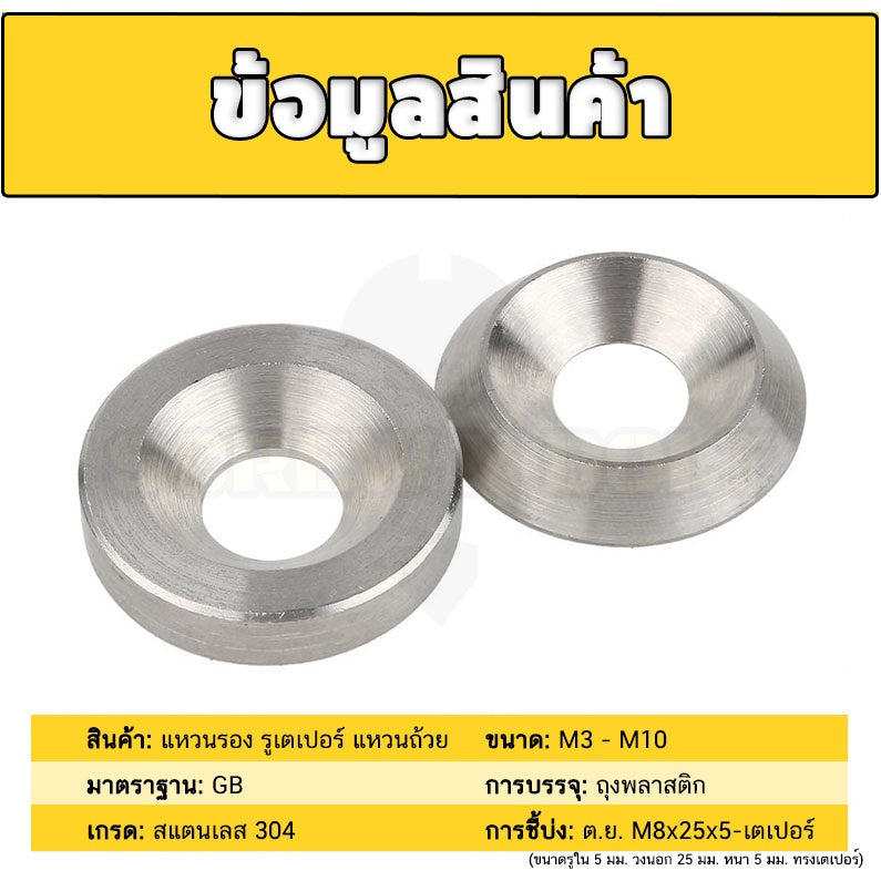 🔍 ชื่อรายการสินค้า : แหวนรอง รูเตเปอร์ แหวนถ้วย ตาปลา เก็บงาน เพิ่มความสวยงาม สแตนเลส 304 - M3 M4 M5 M6 M8 M10