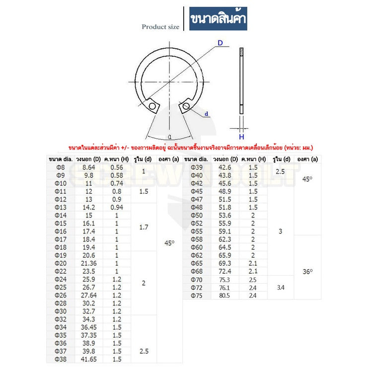 #แหวนล็อคใน #สแตนเลส 304 #ตัว C #dia. 8 9 10 11 12 13 14