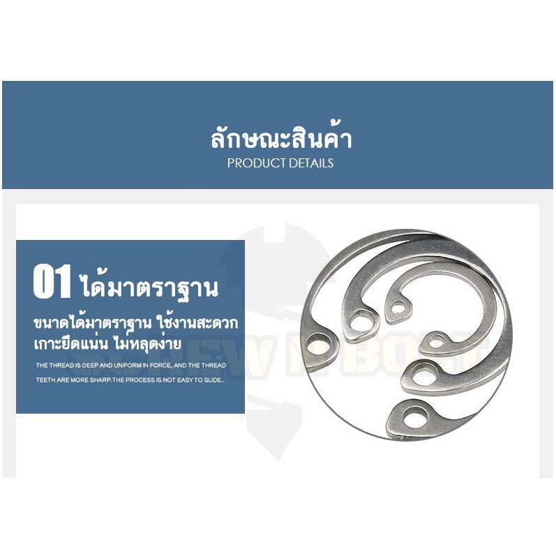 🔍 ชื่อรายการสินค้า : แหวนล็อคใน ตัว C สแตนเลส 304 - dia. 8 9 10 11 12 13 14