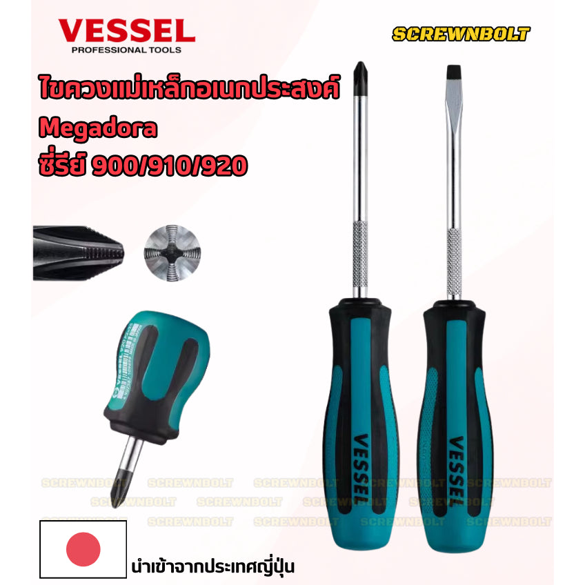 ✏ ประเภทของ VESSEL ไขควง แม่เหล็ก Megadora ซีรีย์ 900 จาก SCREWNBOLT ✏